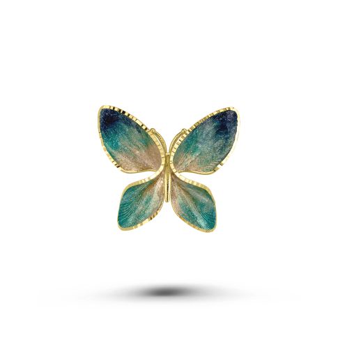 Broșă fluture din aur galben de 14K cu email turcoaz