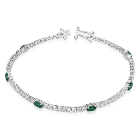8. Inel semi-eternity din aur alb de 14K cu tsavorite cu tăietură princess și diamante rotunde