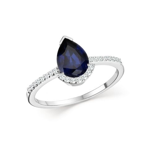 Inel din aur alb de 14K cu safir de laborator lacrimă și diamante naturale