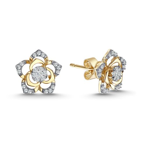 Cercei floare Rosetta din aur de 14K cu diamante (0,191 ct)