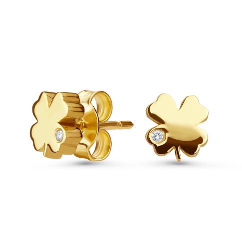 Cercei trifoi din aur de 14K cu diamante (0,01 ct)