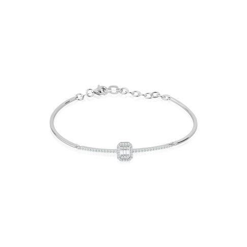Brățară din aur alb de 14K cu diamante baghetă și rotunde (1,49 ct)
