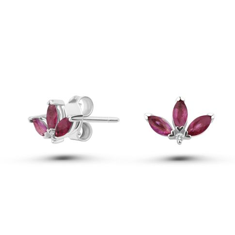 Cercei Peony Mini din aur de 18K cu trei rubine marchiză și diamante