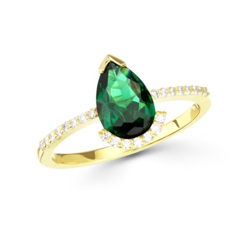 Inel din aur galben de 14K cu smarald de laborator lacrimă și diamante naturale