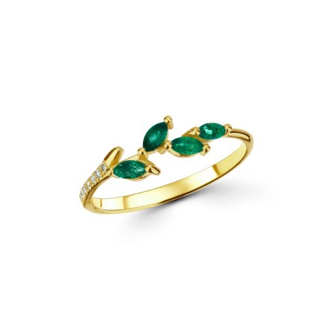 Inel Freesia din aur de 18K cu smaralde marchiză și diamante
